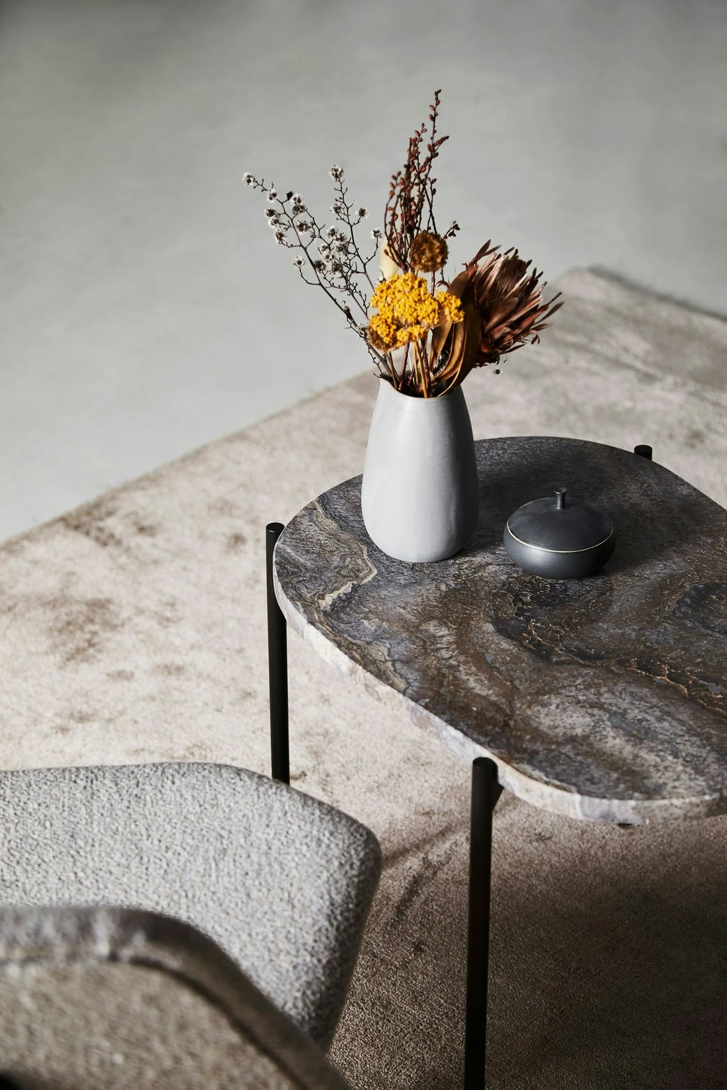 Woud LA TERRA Beistelltisch Travertin Grau, L: 57,2 Cm
